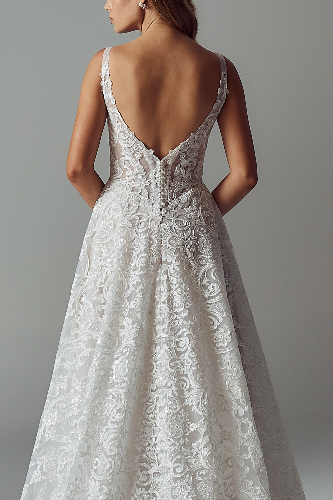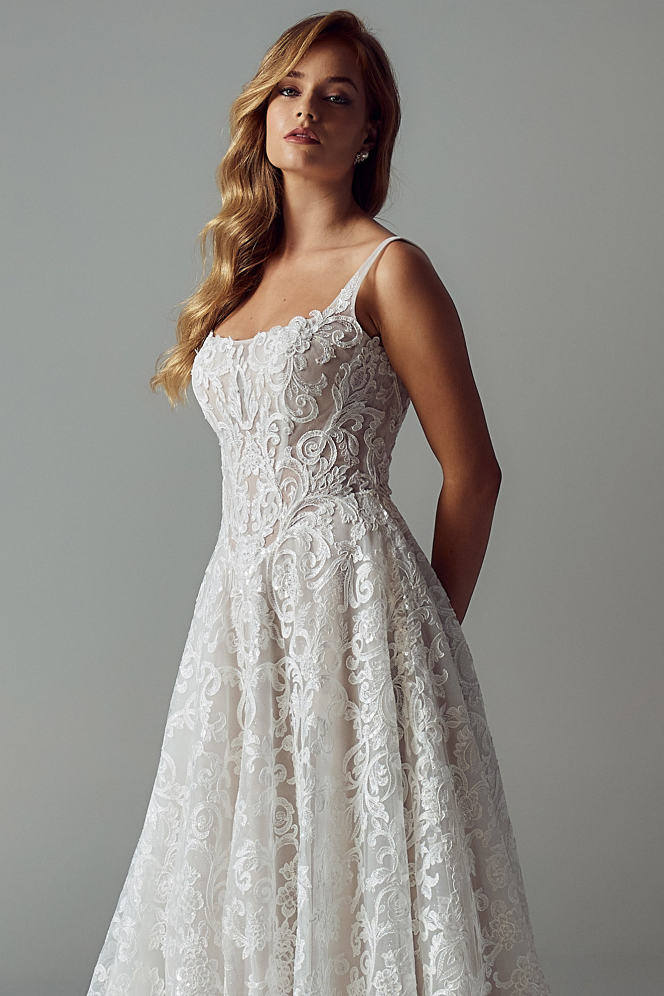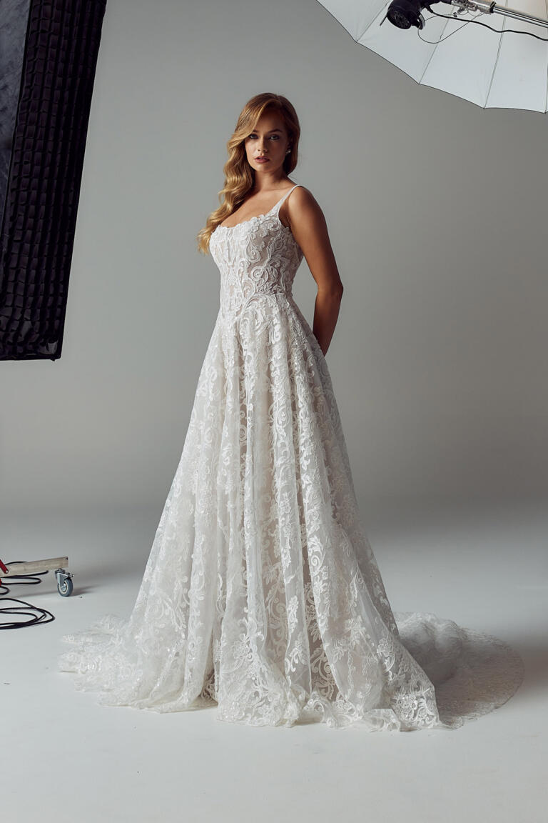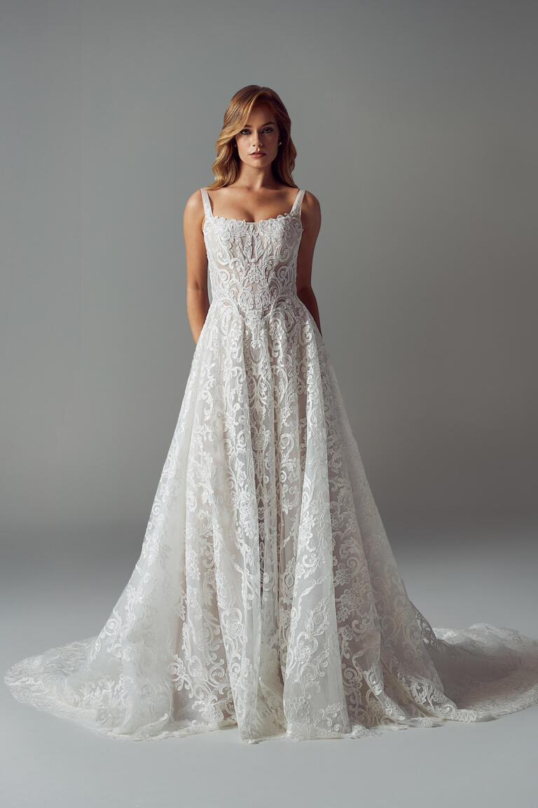 For brides who love bold lace but crave a classically bridal shape, our Bobby-Jay wedding dress provides both in harmony.
