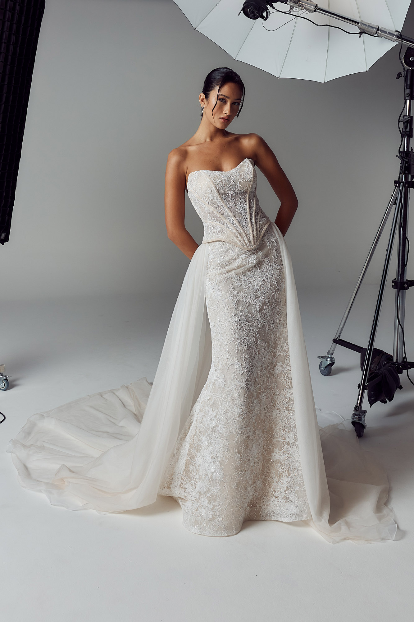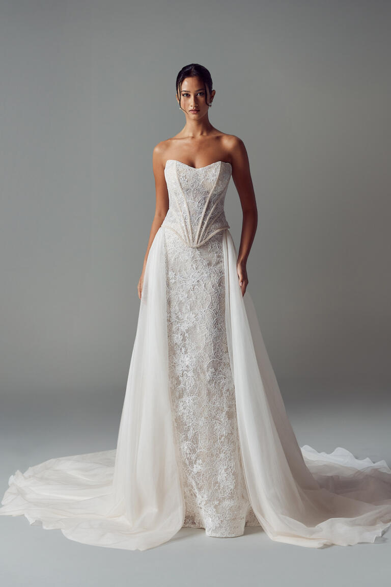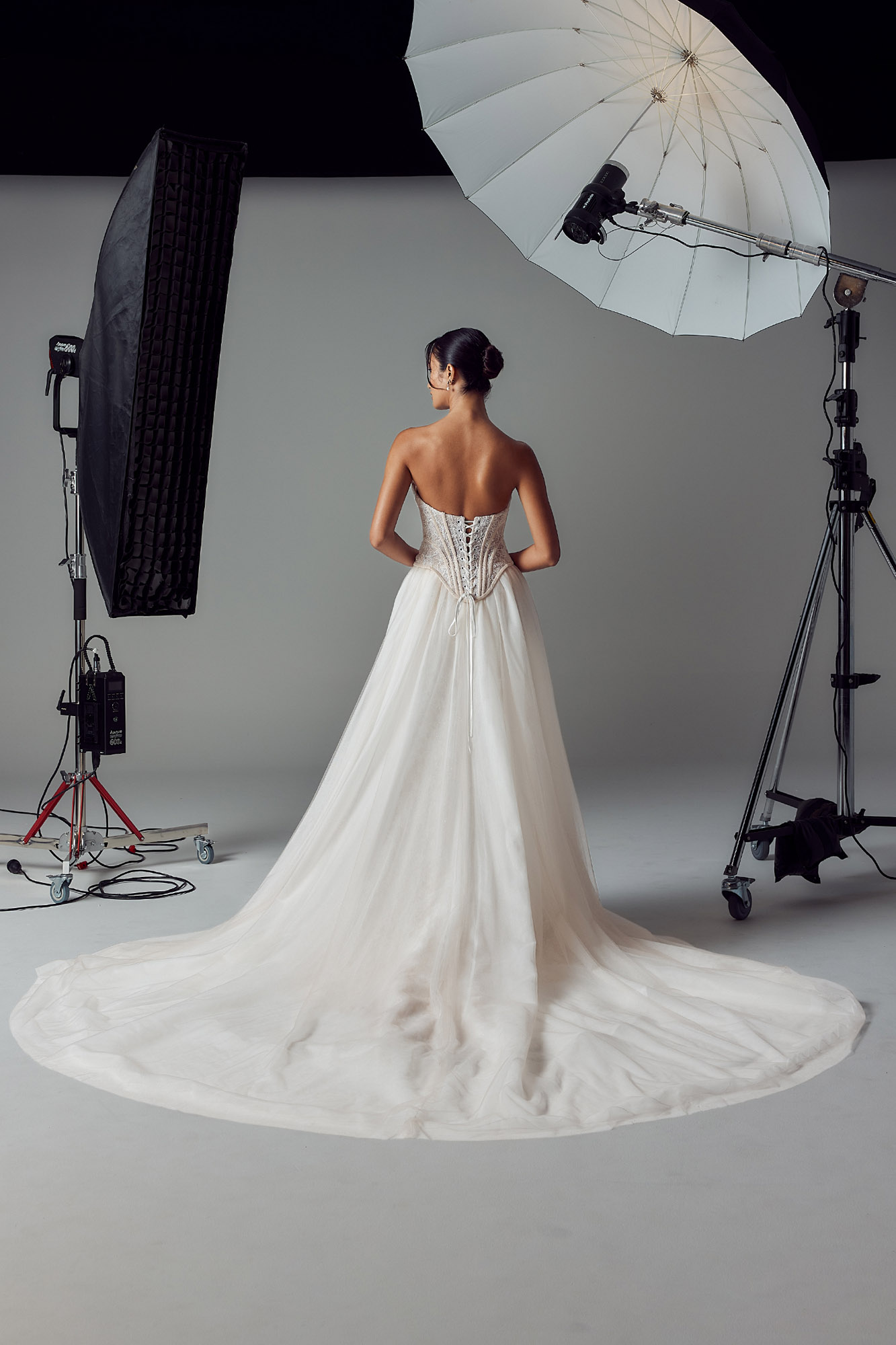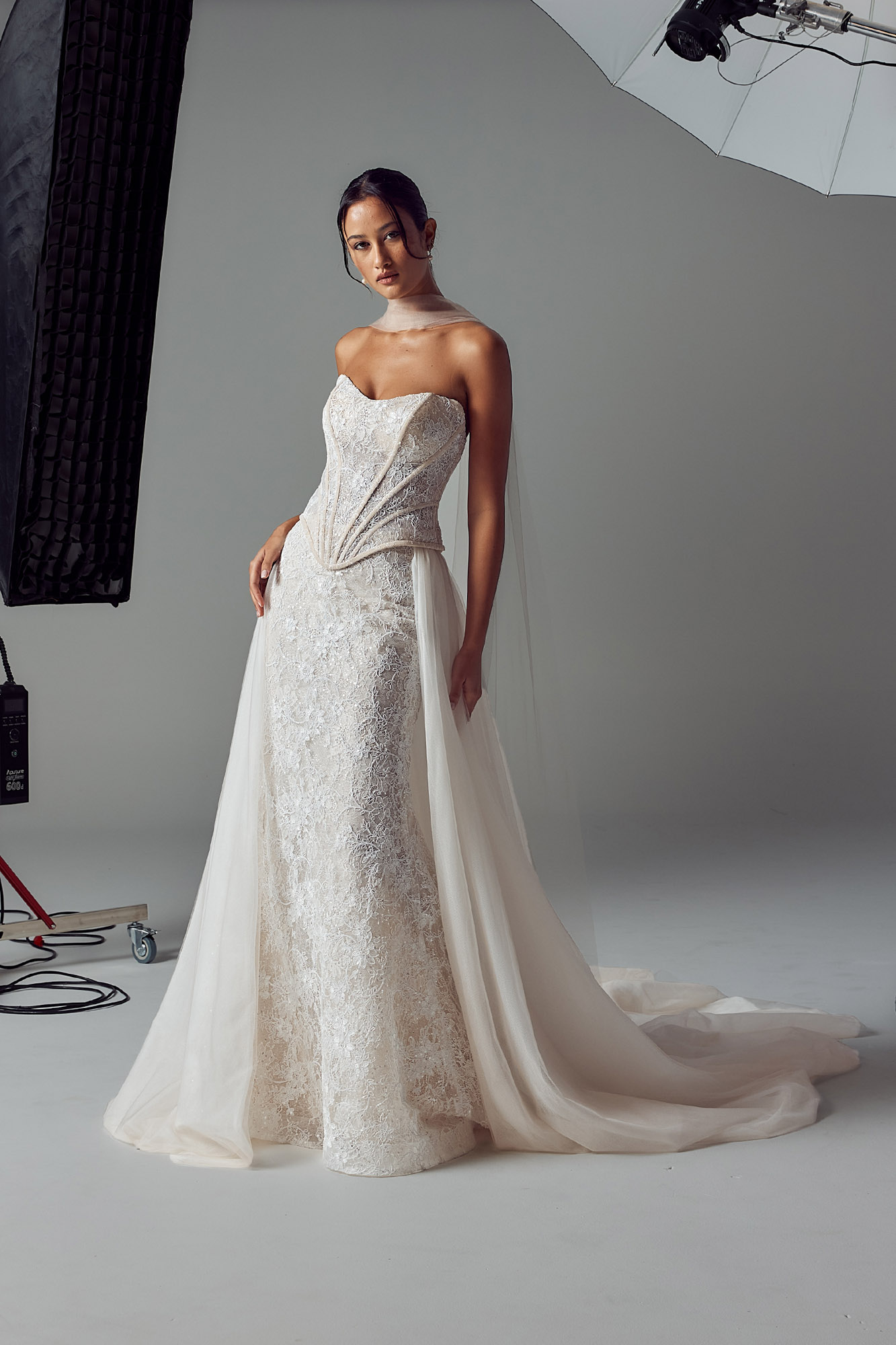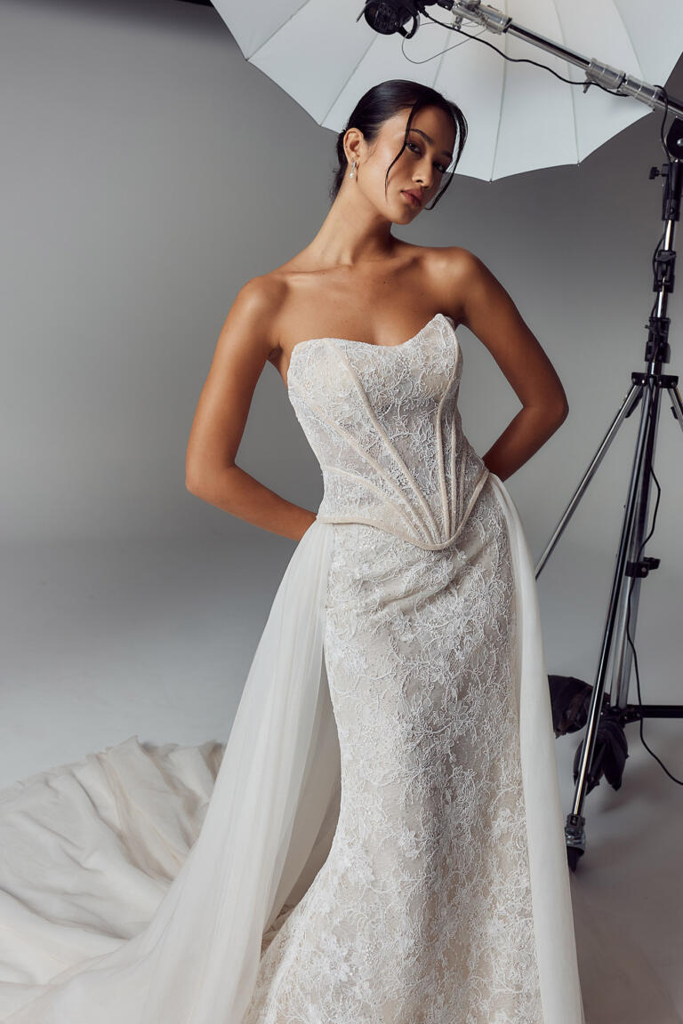 Our Heather Overskirt is an effortless addition to your wedding day look to create two looks in one.