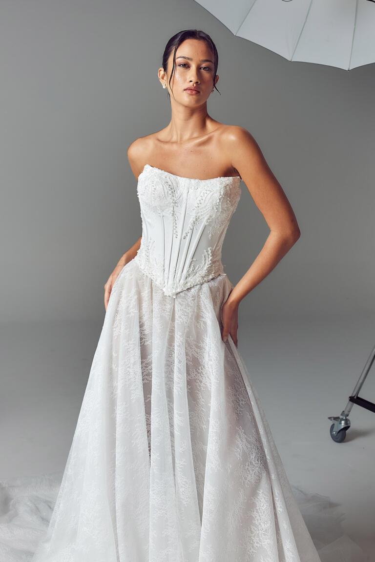 See all of our bridal separates to design your dream bridal style. Shown here with our Joanie Bodice.
