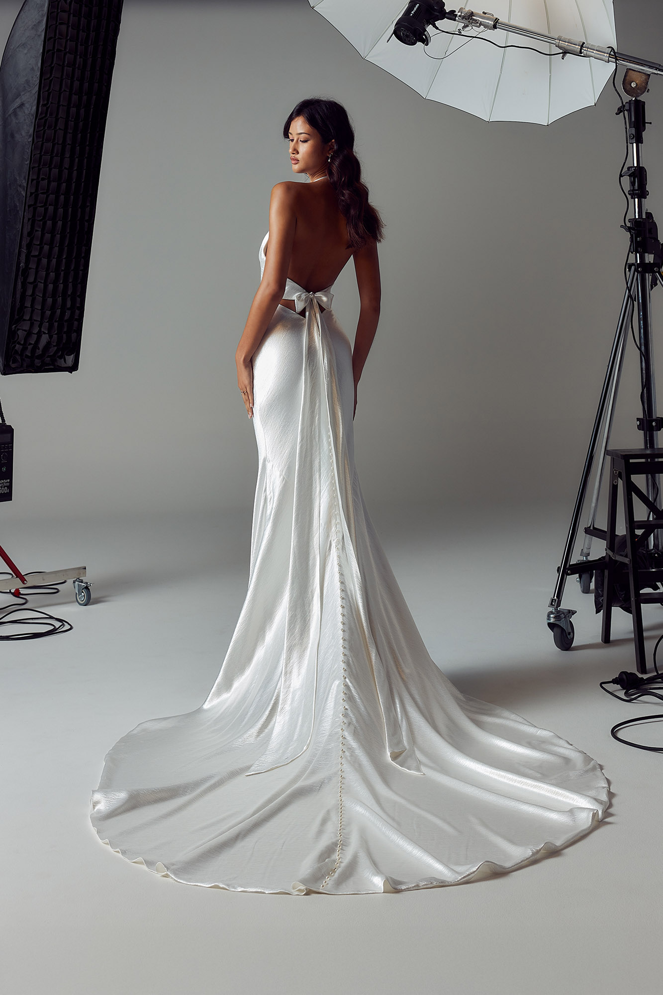 Crafted in luxe hammered satin, that has a luminous, liquidous effect. This dress is a modern, minimalist statement that celebrates the feminine form.