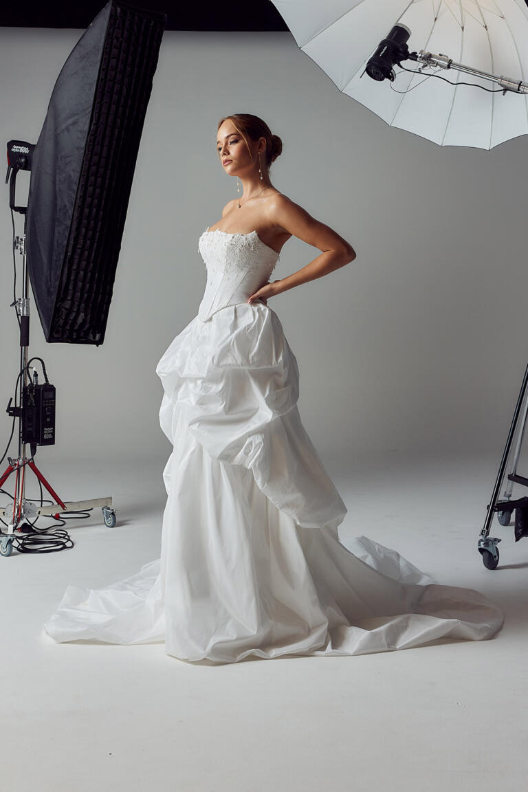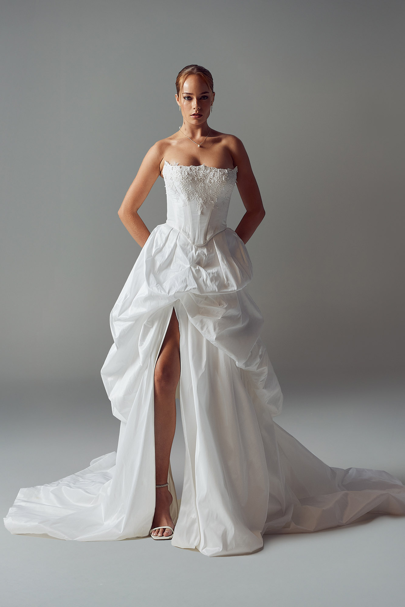 Our Ramona Skirt is a bold, fashion-forward silhouette for our modern, statement brides.