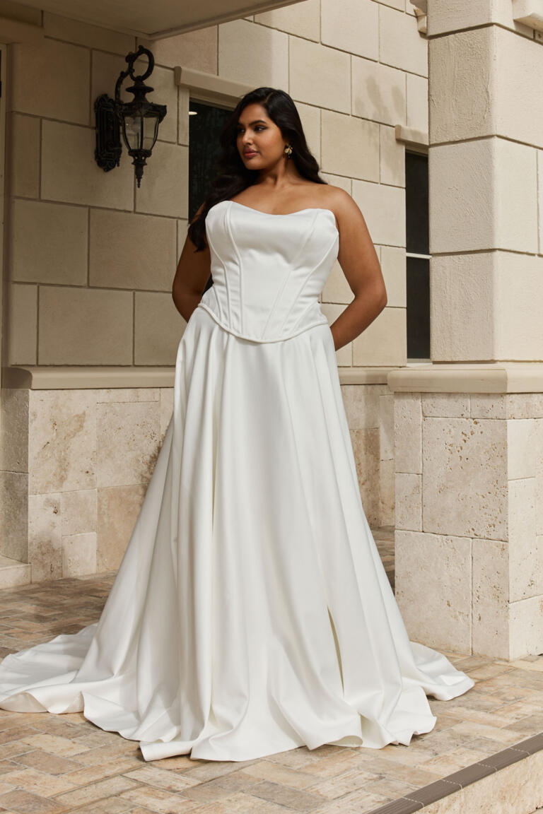 Our Sandy-Lou Skirt is a perfect, sleek A-line Skirt to act as an ideal base to a variety of bridal styles. Modern, minimalist and traditional in shape.