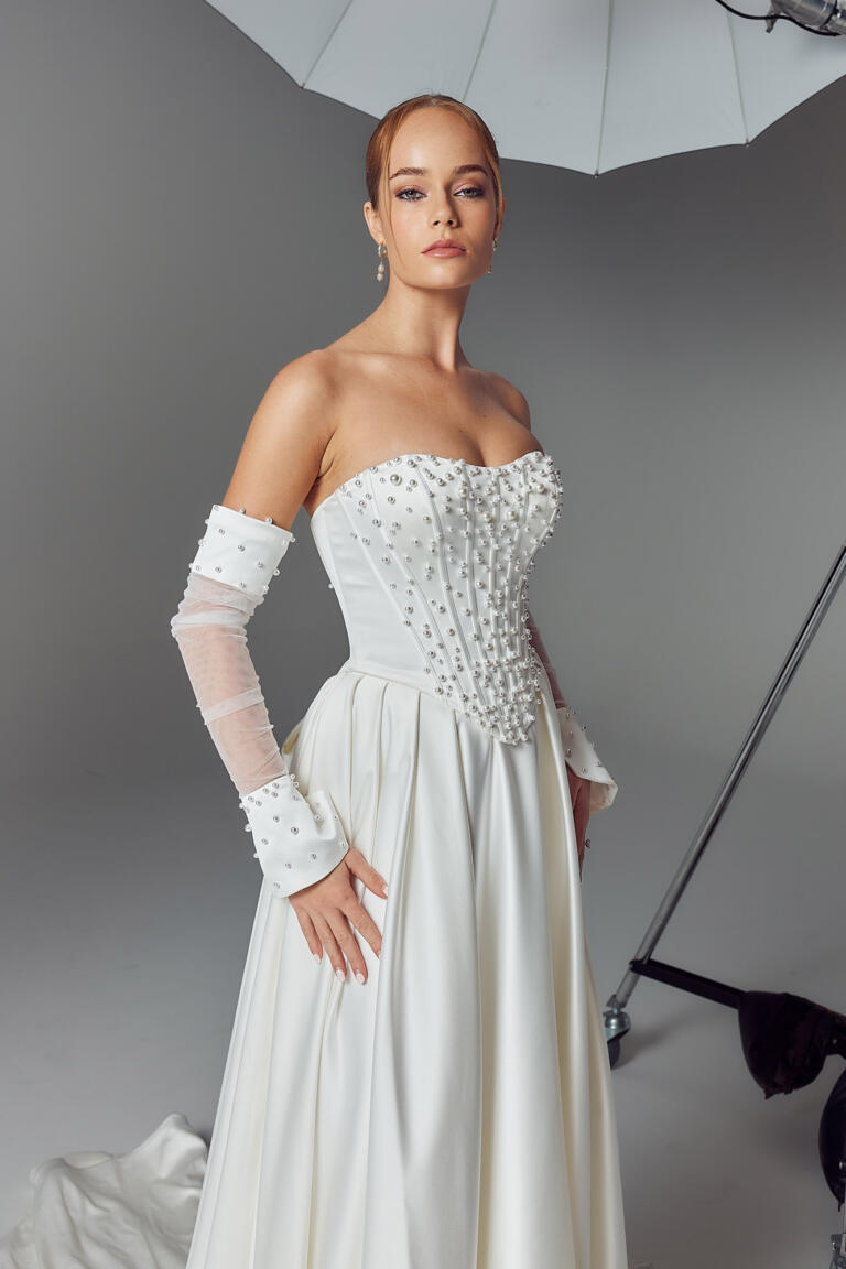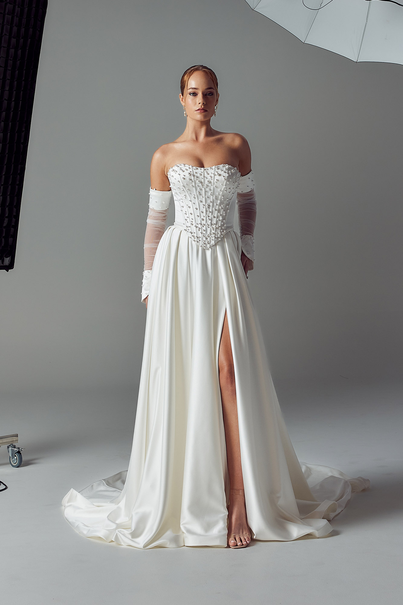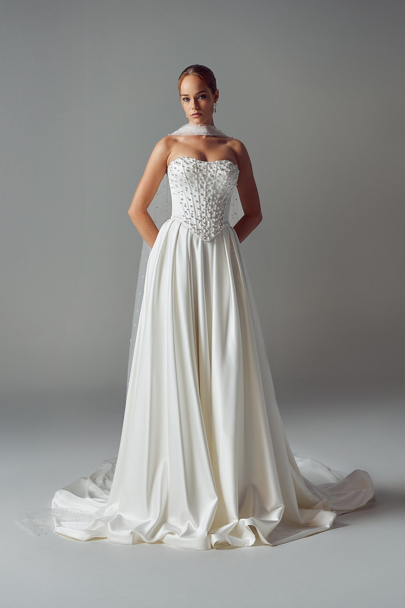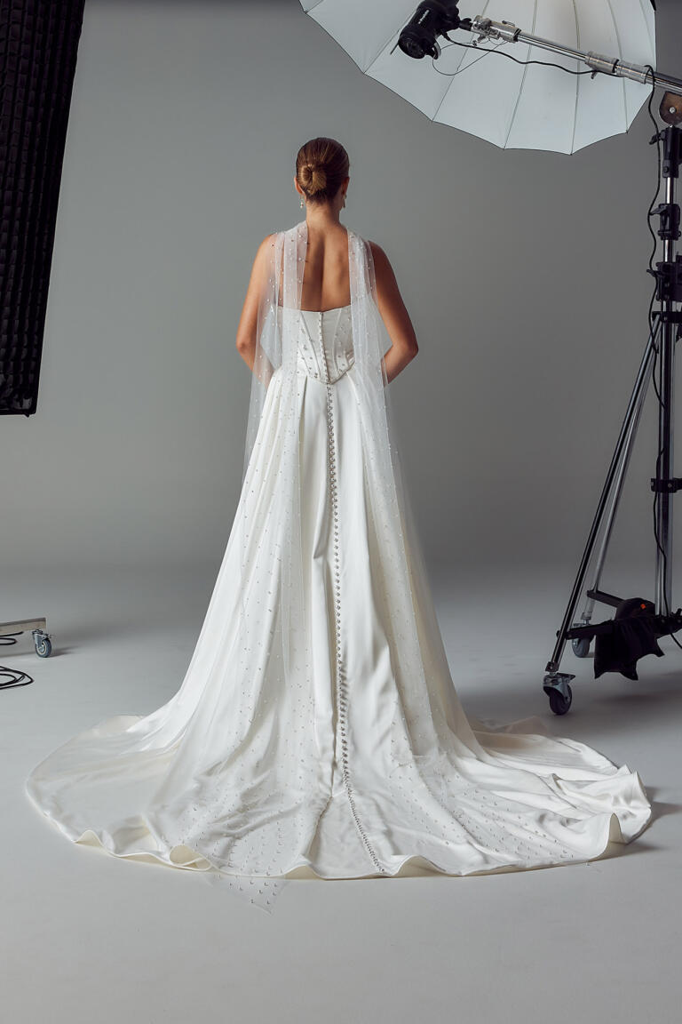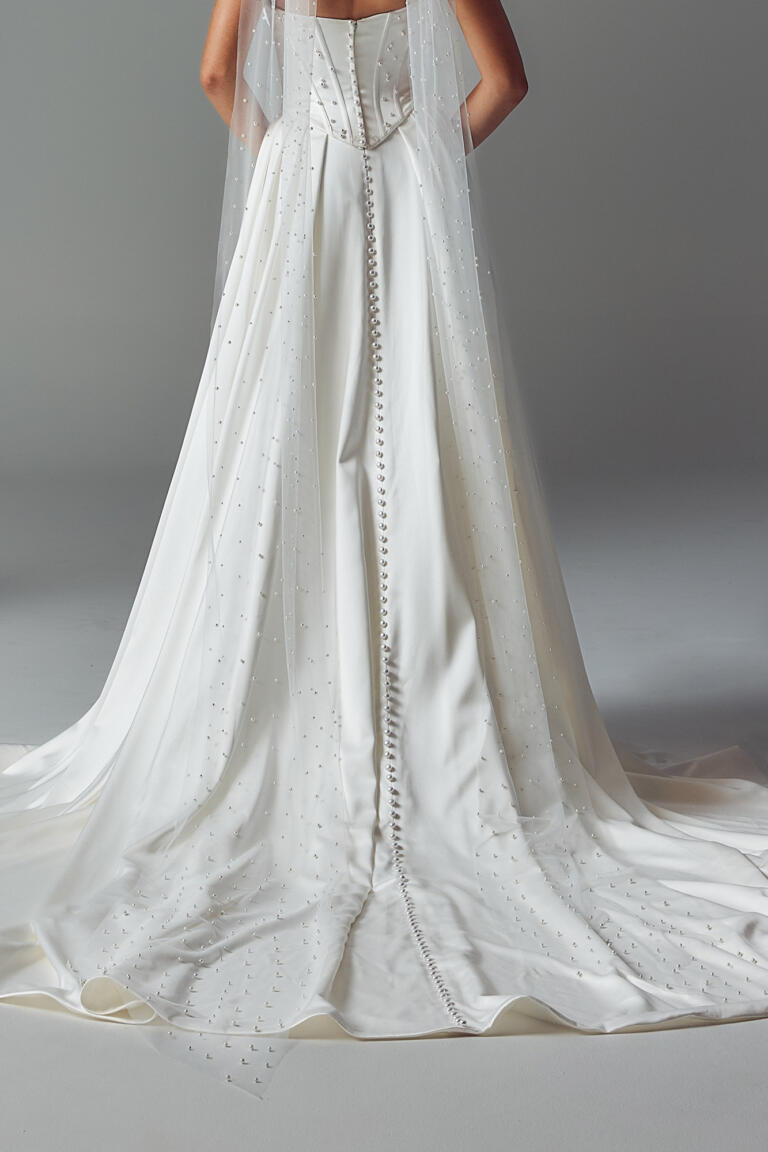 Our Sue Skirt is a traditional bridal shape with feminine elements that make her a truly romantic bridal design.